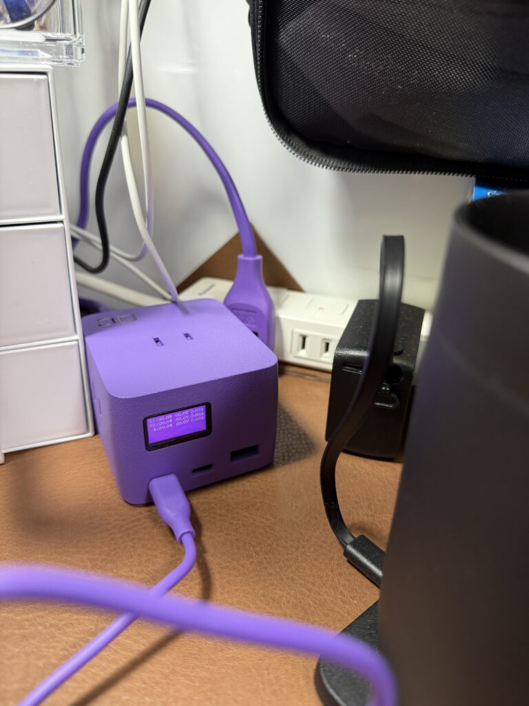 どうでしょうか? 今まで黒や白のガジェットが多かったデスクですが、今回のパープルが良いアクセントになっています。 「派手すぎて浮くかな?」と少し心配していましたが、意外と馴染んでくれました。この色が視界に入るだけで、作業のモチベーションが上がりそうです。