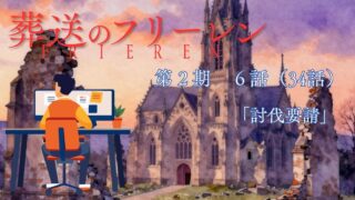 アニメ『葬送のフリーレン』第2期 第6話(第34話)「討伐要請」の最速感想レビュー!ゲナウの過去を掘り下げるアニオリや、フリーレンの完璧な表情管理、可愛すぎる女性陣のもぐもぐタイムまで見どころを徹底解説。強敵レヴォルテ登場の神回を振り返ります。