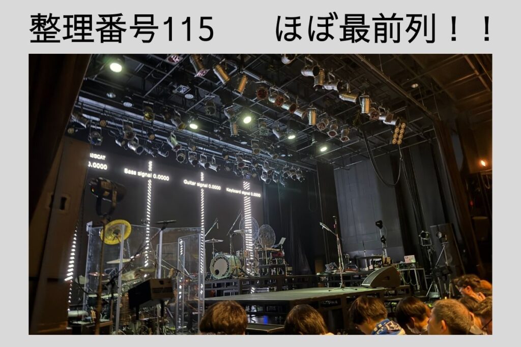 今回はなんと整理番号「115番」という超良番を引き当てたため、オールスタンディングの会場でもかなり前の方を陣取ることができました!